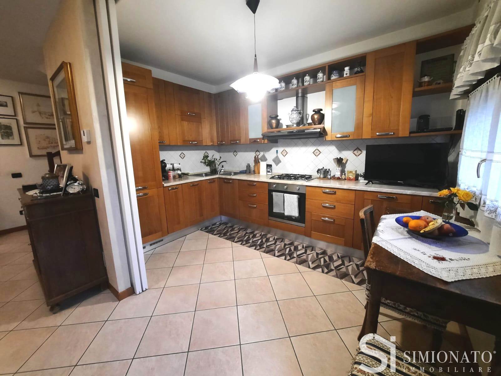 Attraversando il giardino privato di circa 100 mq si accede alla zona giorno al piano terra, climatizzata, composta da un soggiorno spazioso e luminoso con affaccio diretto sull’esterno. La cucina, separata tramite porta scorrevole, garantisce continuità e allo stesso tempo privacy tra gli ambienti.